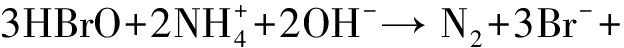 NaBr的加入和產(chǎn)生的HBrO可能在水體中產(chǎn)生溴酸鹽,從而對(duì)養(yǎng)殖魚類健康帶來不利影響。有研究表明,在Br/N值選擇合理的條件下,Br優(yōu)先反應(yīng)的是N,不會(huì)產(chǎn)生過多其他形式的溴化物[7];同時(shí),氨氮的存在可大幅減少HBrO產(chǎn)生溴化物的可能性[18],這也是盡管海水中存在大量Br元素,臭氧仍然在海水養(yǎng)殖水處理中被廣泛應(yīng)用的原因[19-20]。