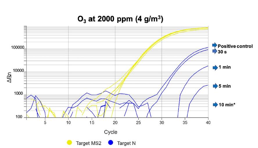 方法:用不同的臭氧濃度、暴露時(shí)間和相對(duì)濕度條件對(duì)熱滅活SARS-CoV-2污染的PPE進(jìn)行處理。實(shí)時(shí)聚合酶鏈反應(yīng)檢測(cè)SARS-CoV-2基因擴(kuò)增。結(jié)果:1萬ppm (20 g/m3)臭氧照射30 s、4000 ppm臭氧照射5 min、2000 ppm臭氧照射10 min后,個(gè)人防護(hù)裝備中未見SARS-CoV-2擴(kuò)增。在臭氧濃度較低時(shí),4 - 12ppm (0.008-0.024 g/m3),影響高度依賴于相對(duì)濕度條件。