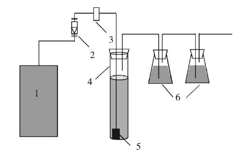 5. 曝氣頭;6. 臭氧尾氣吸收瓶