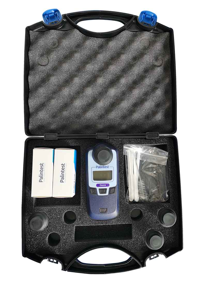 Palintest臭氧測(cè)量計(jì)隨硬質(zhì)手提箱提供,套件內(nèi)包含檢測(cè)所需的DPD試劑和所有配件。
