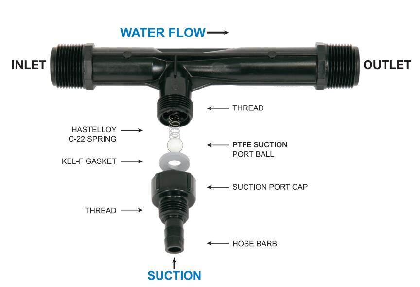 Mazzei射流器是非常高效,緊湊的差壓射流器與內(nèi)部混合葉片。當(dāng)專利射流器的進(jìn)出口端口之間存在足夠的壓力差時,在射流器體內(nèi)產(chǎn)生真空,通過吸入口開始吸入。