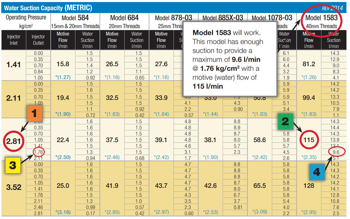 Mazzei射流器性能表選款指南