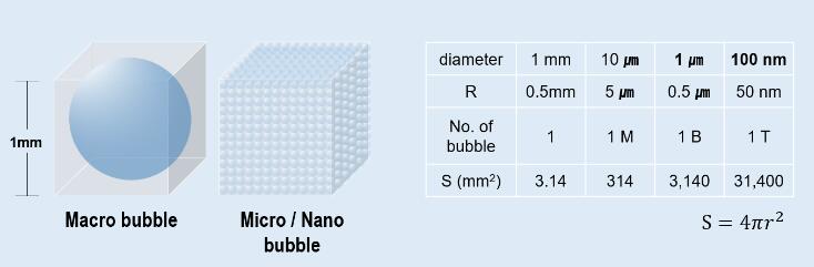 納米氣泡具有更高的表面積與體積比,這使得更大體積的氣體與水接觸。這與由于其體積小和浮力高而在水中保持漂浮的能力相結(jié)合,提高了氣體和液體之間的氣體轉(zhuǎn)移效率。
